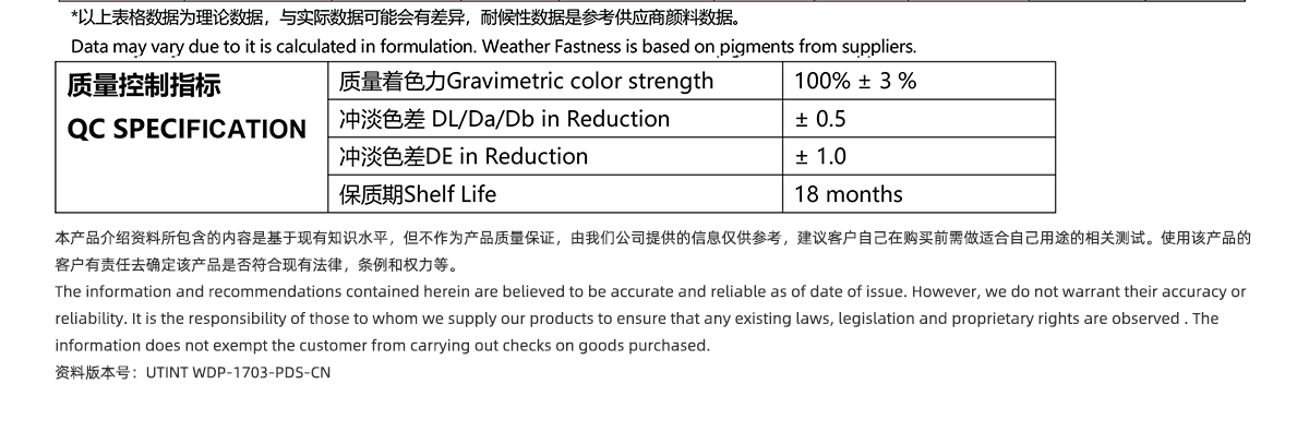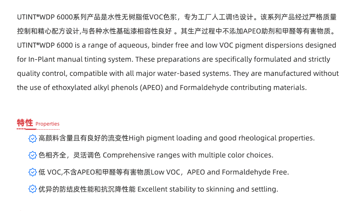 UTINT® WDP 6000水性涂料工廠專用色漿
